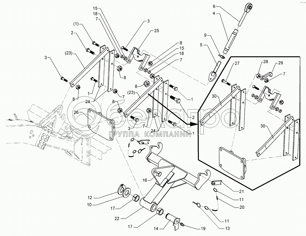 Каталог запасных частей к технике: Lemken Quarz 7/400KA. Hydraulic lift linkage D50x200 L2 Z2