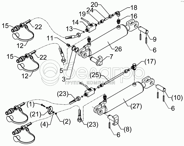 Каталог запасных частей к технике: Lemken Quarz 7/500K. Hydraulic assembly DA 80x320-AHG-ST