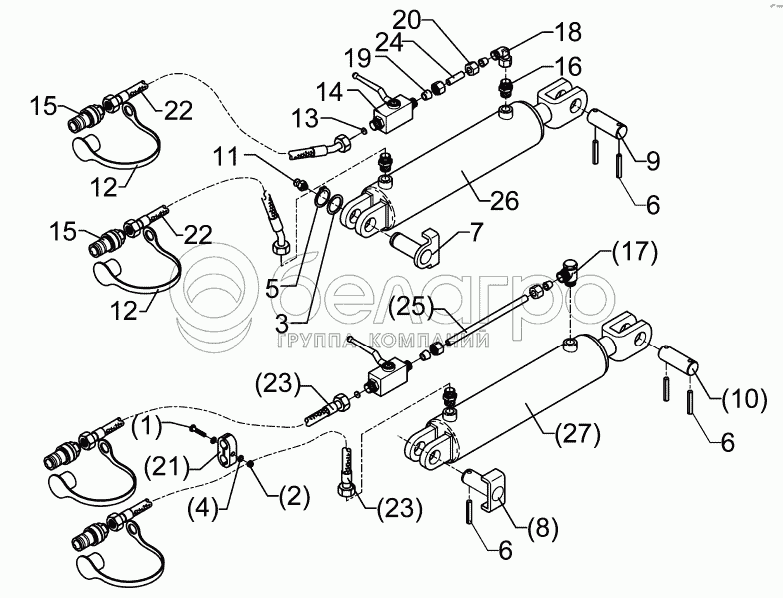 Каталог запасных частей к технике: Lemken Quarz 7/600K. Hydraulic assembly DA 80x320-AHG-ST