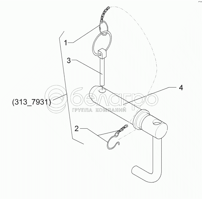 Каталог запасных частей к технике: Lemken Rubin 10/600 KUA. 3137929 Top link pin with chain