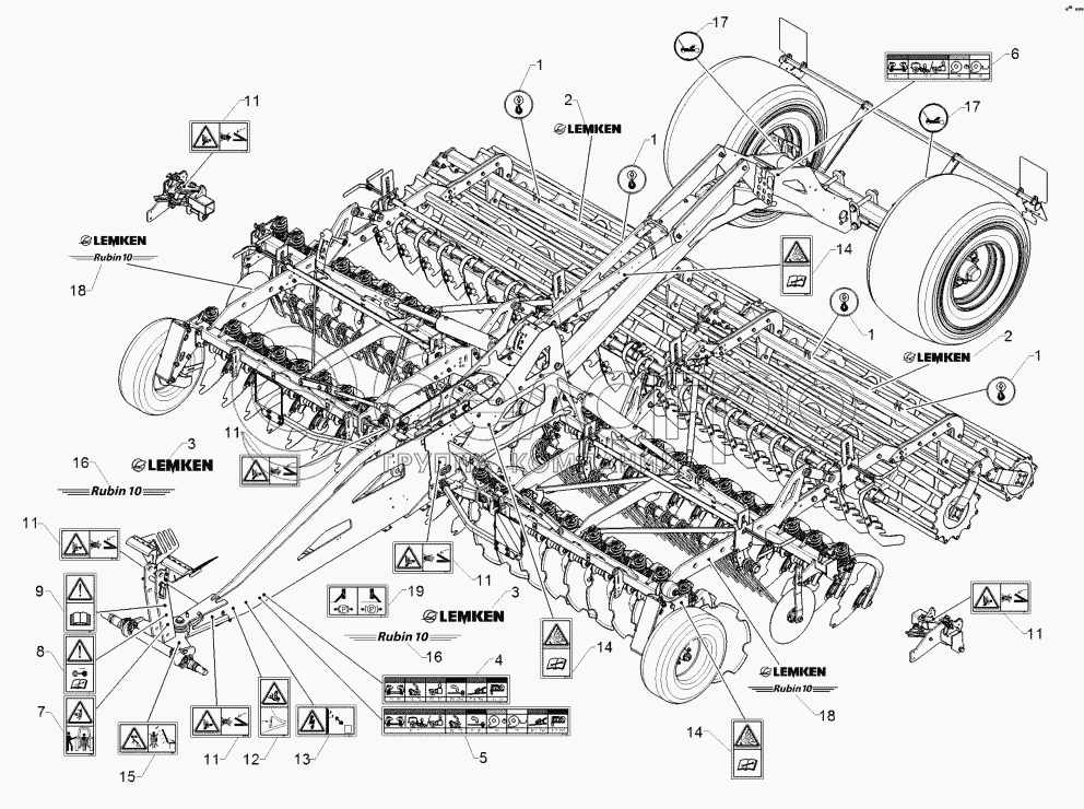 Каталог запасных частей к технике: Lemken Rubin 10/600 KUA. 59010129 Label set