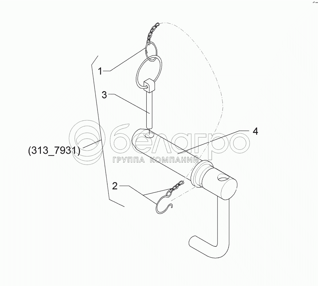 Каталог запасных частей к технике: Lemken Rubin 12/700 KUA. 3137929 Top link pin with chain