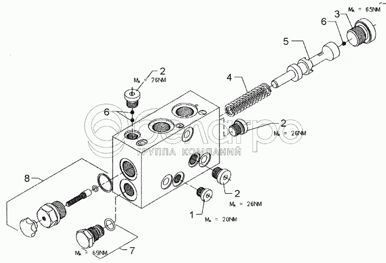 Каталог запасных частей к технике: Lemken Smaragd 9/600KA. Three-way pressure balance LU8SSCK-QM22/04
