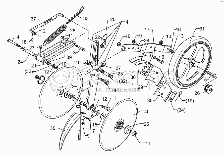 Каталог запасных частей к технике: Lemken Solitair 10/600K. Double disc coulter + roller D350/330-B