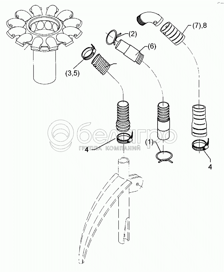 Каталог запасных частей к технике: Lemken Solitair 12/1200K. Flexible hose D25x1100 1xD30