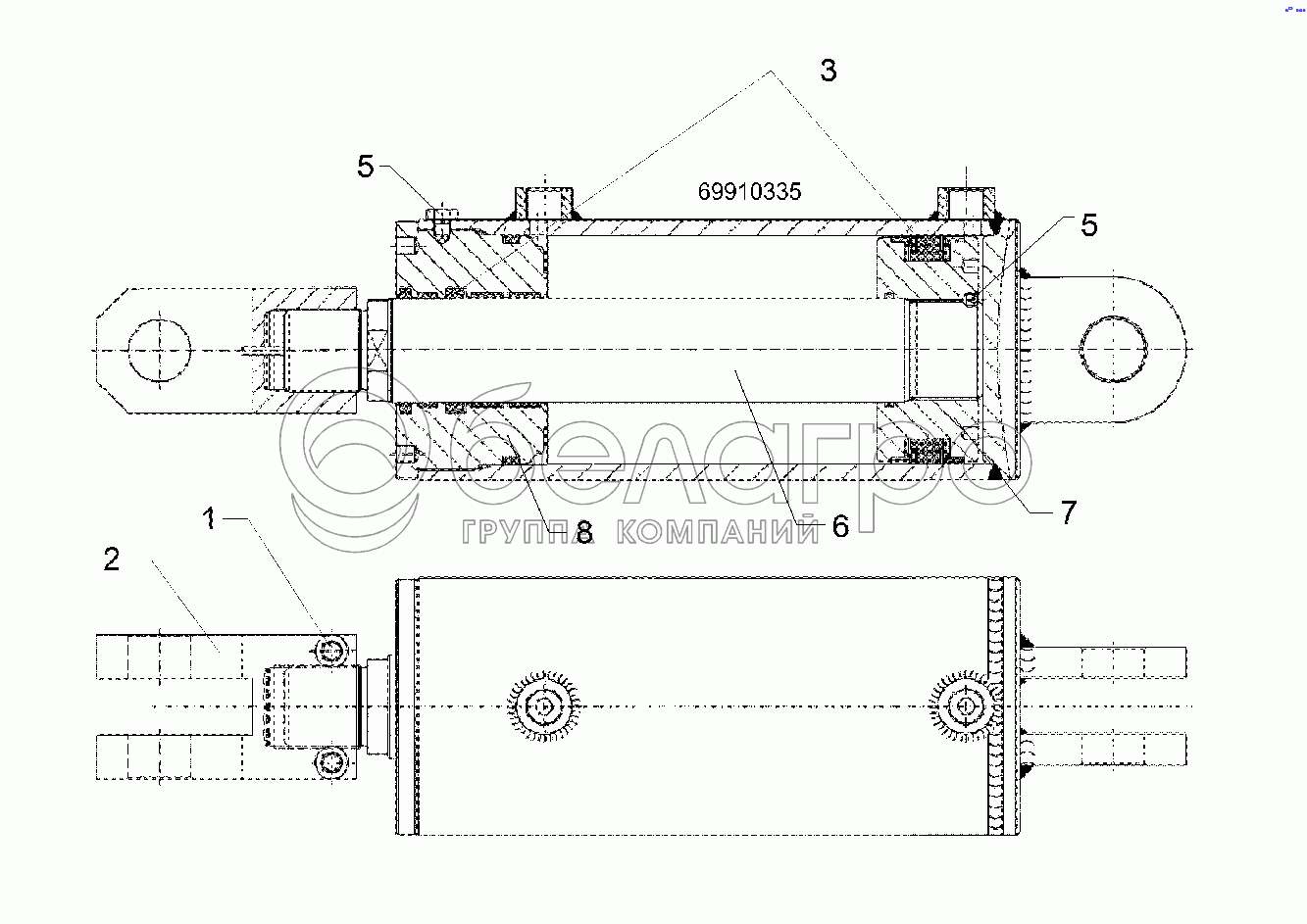 Каталог запасных частей к технике: Lemken Solitair 12/1200KD. 5752356 Hydraulic ram
