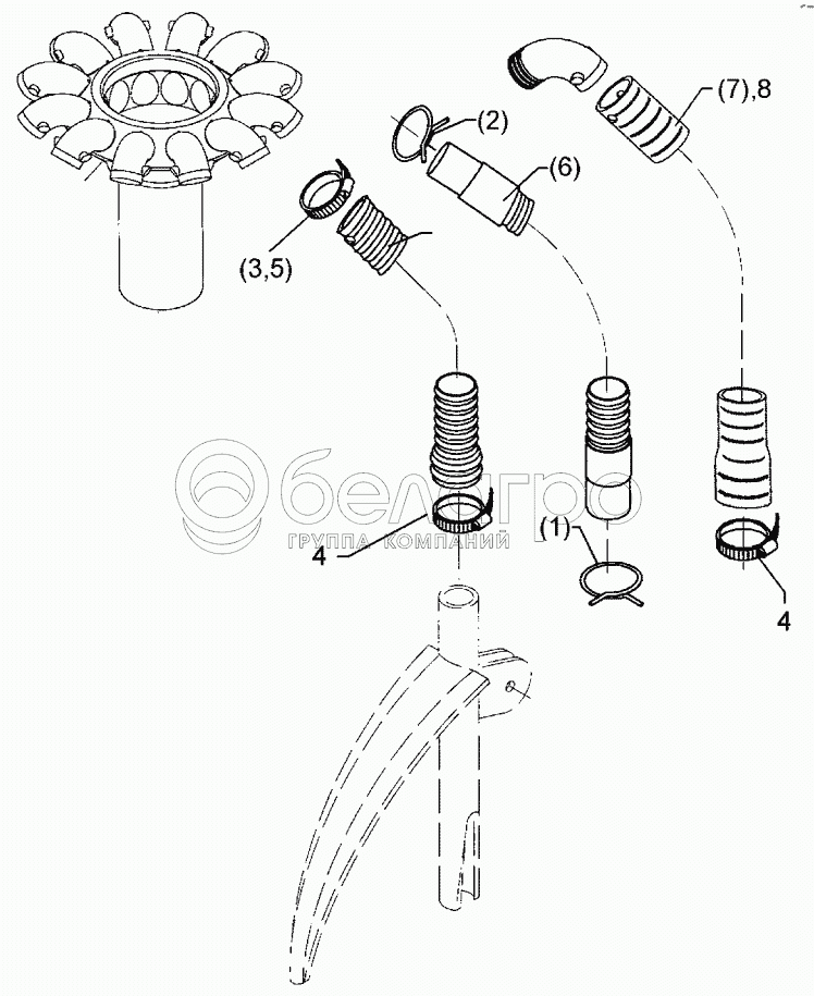Каталог запасных частей к технике: Lemken Solitair 9/400K. Flexible hose D25x1100 1xD30