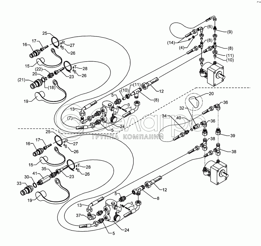 Каталог запасных частей к технике: Lemken Solitair 9/450K. Hydraulic assembly fan Solitair 2L V+R