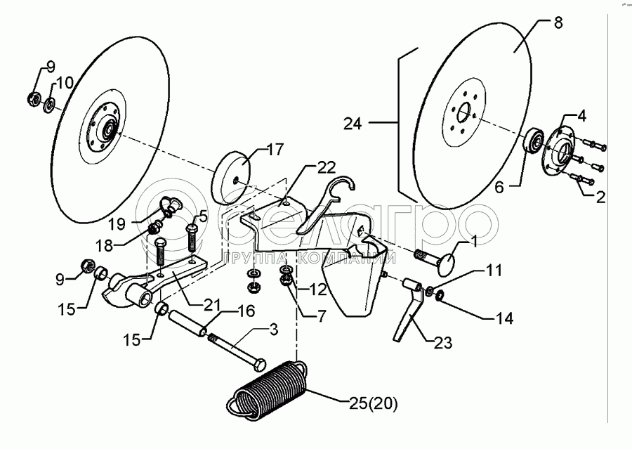 Каталог запасных частей к технике: Lemken Solitair 9/600K. Single disc coulter, short D325 RE