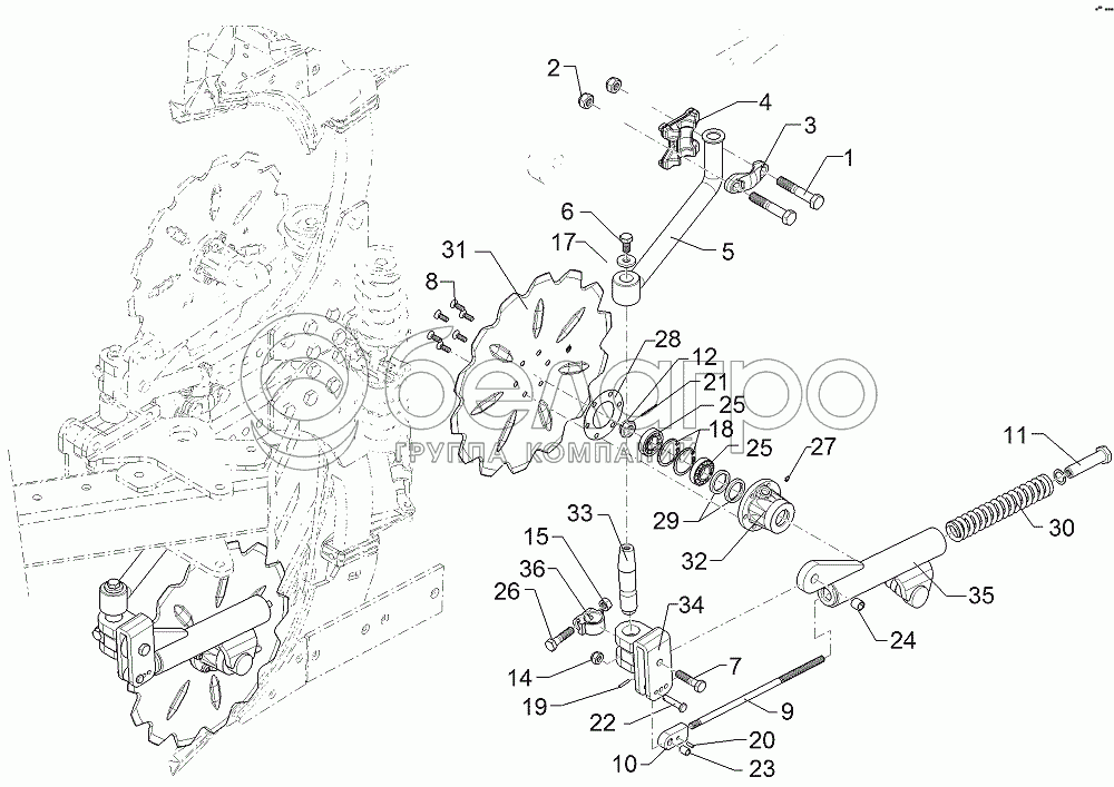 Каталог запасных частей к технике: Lemken Vari-Opal 100X. 657 7814 Trip disk-coulter