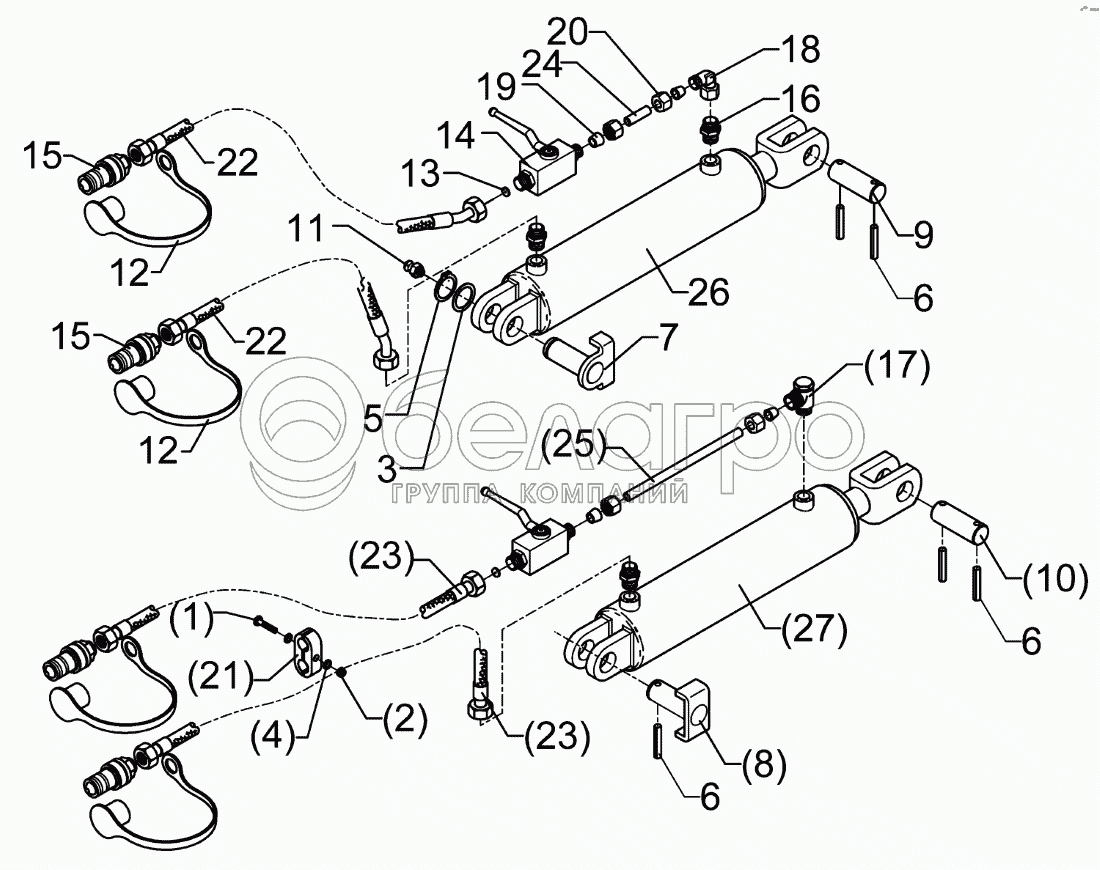 Каталог запасных частей к технике: Lemken Zirkon 10/450. Hydraulic assembly DA 80x320-AHG-ST