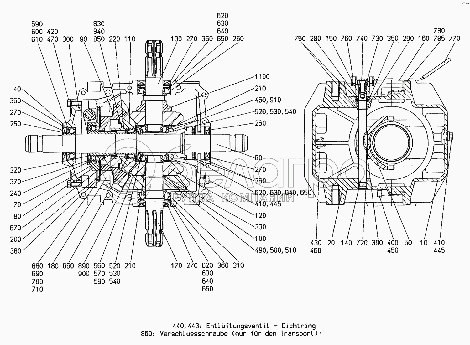 Каталог запасных частей к технике: Lemken Zirkon 10/450K. Gear box Zirkon 10/400-600 K