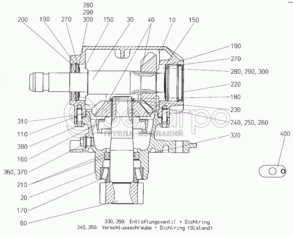 Каталог запасных частей к технике: Lemken Zirkon 10/450K. Miter gear Zirkon 10 K RE