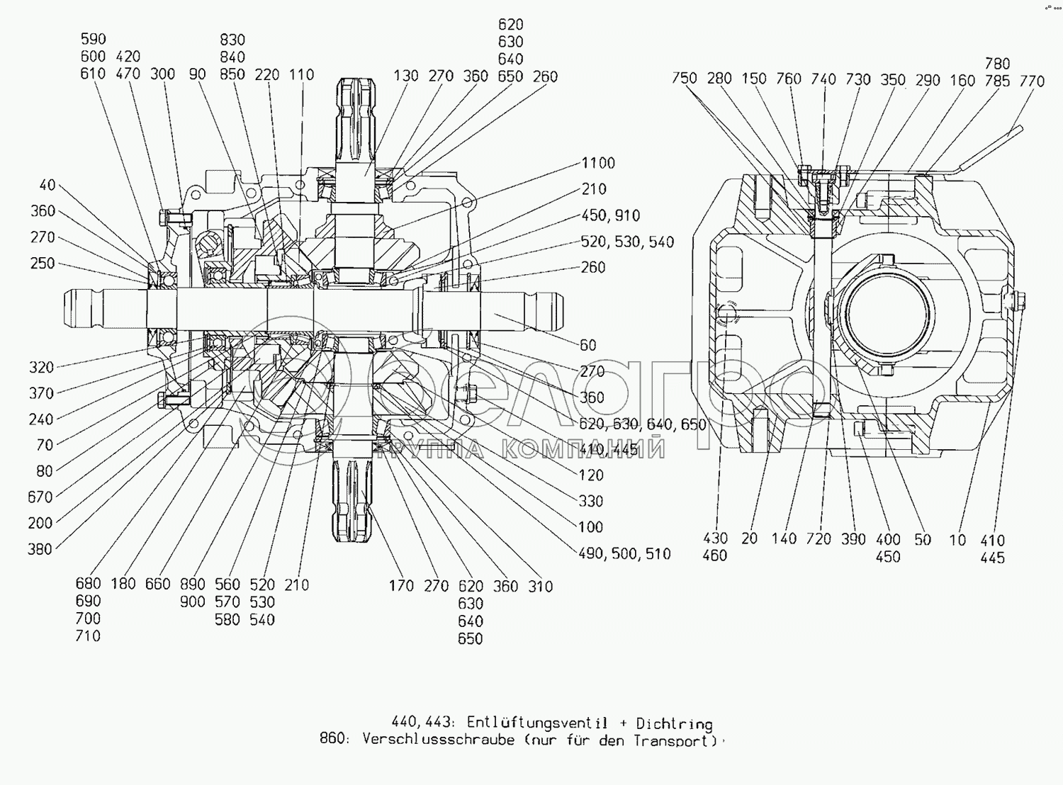 Каталог запасных частей к технике: Lemken Zirkon 10/500K. Gear box Zirkon 10/400-600 K