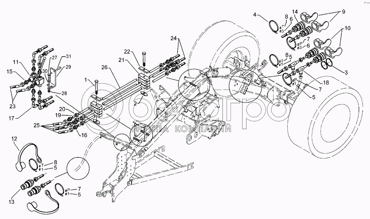 Каталог запасных частей к технике: Lemken Zirkon 10/600KA. Hydraulic pipe Zirkon 9 KA