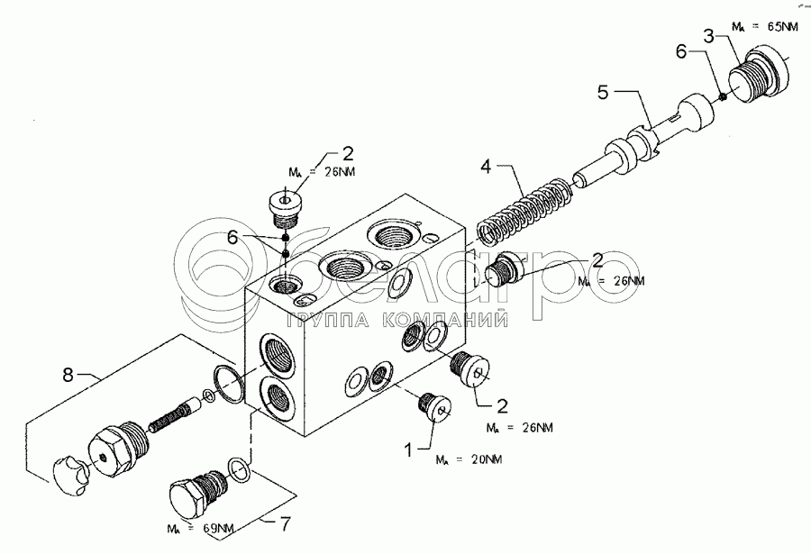 Каталог запасных частей к технике: Lemken Zirkon 10/600KA. Three-way pressure balance LU8SSCK-QM22/04