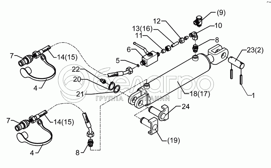 Каталог запасных частей к технике: Lemken Zirkon 7/250. Hydraulic assembly DA 80x245-AHG-LT