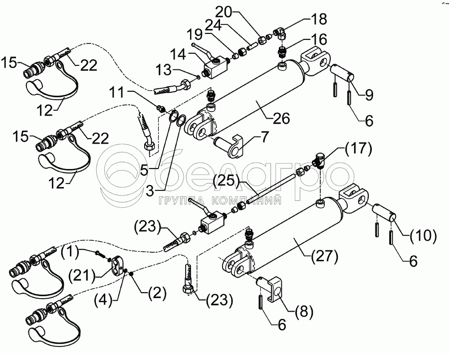 Каталог запасных частей к технике: Lemken Zirkon 9/400. Hydraulic assembly DA 80x320-AHG-ST