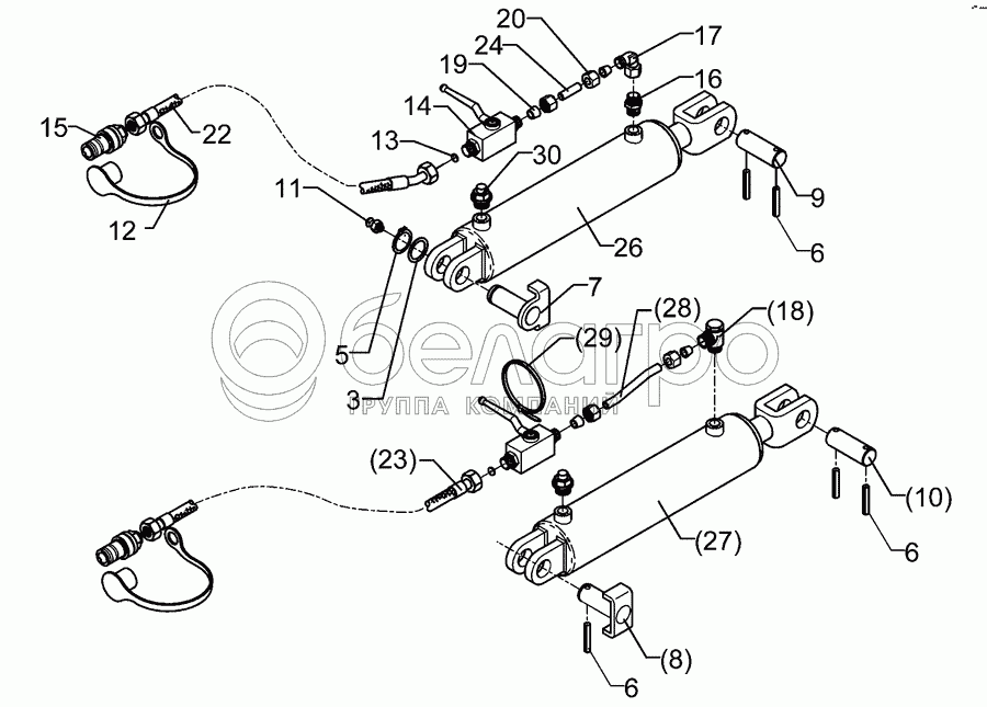 Каталог запасных частей к технике: Lemken Zirkon 9/600K "B". Hydraulic assembly SA 80x320-AHG-ST