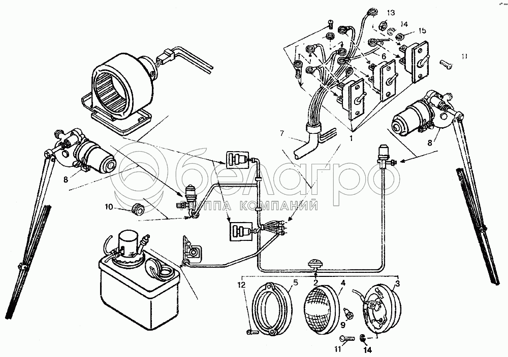 Каталог запасных частей к технике: ЛТЗ-55. Электрооборудование крыши кабины