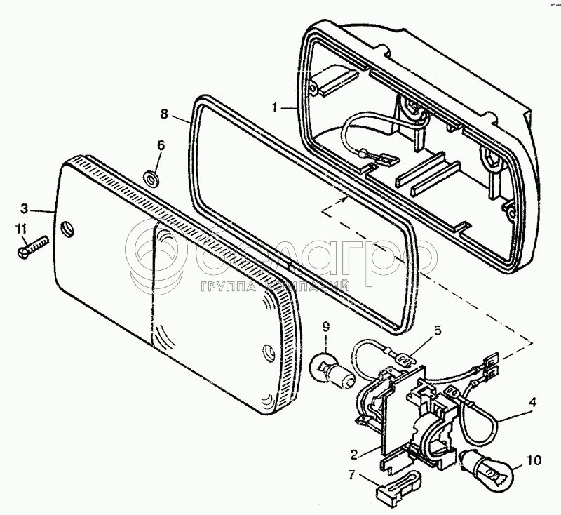 Каталог запасных частей к технике: ЛТЗ-55. Фонарь передний