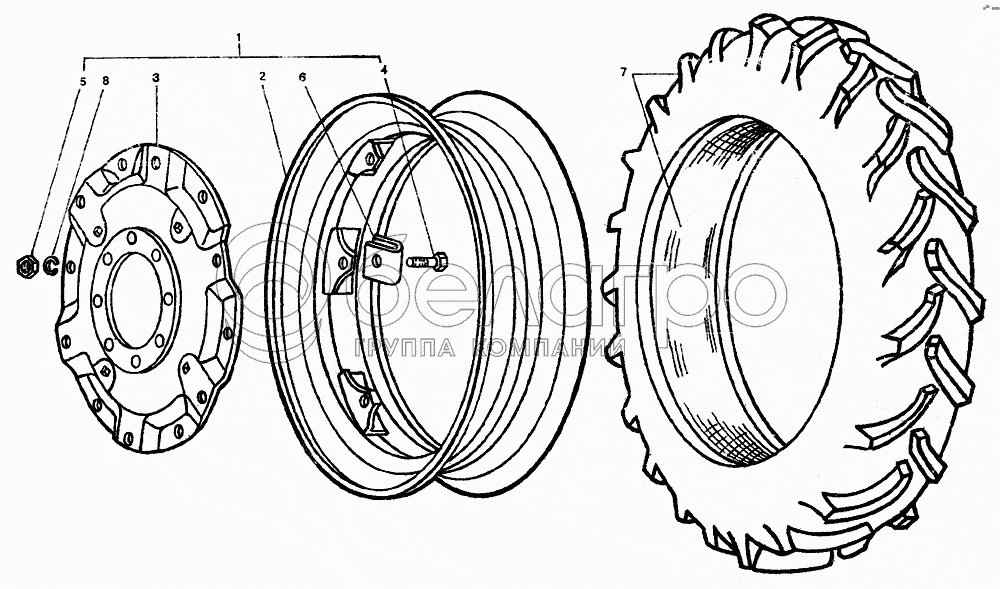 Каталог запасных частей к технике: ЛТЗ-55. Колесо заднее 14,9-30