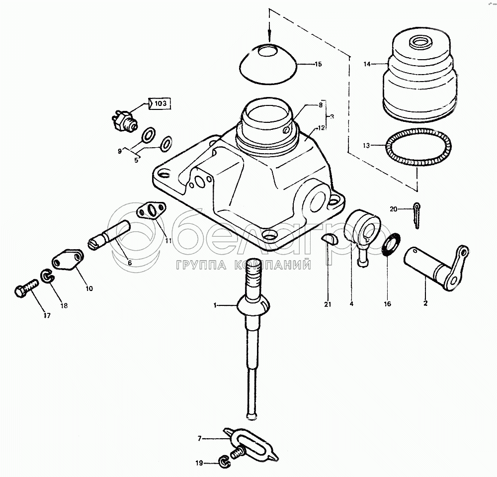 Каталог запасных частей к технике: ЛТЗ-55. Механизм переключения передач с блокировкой запуска двигателя