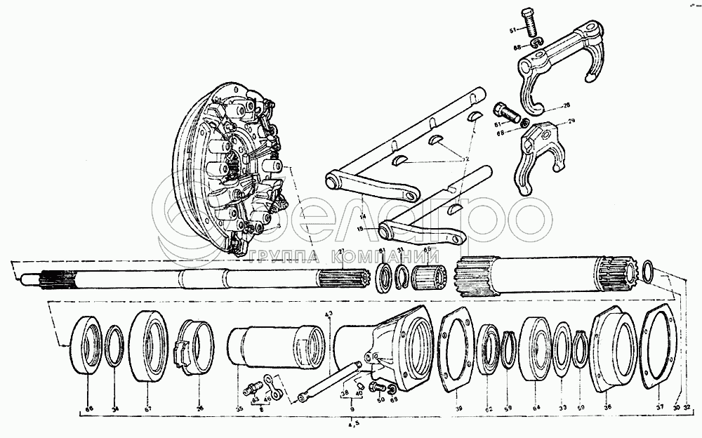 Каталог запасных частей к технике: ЛТЗ-55. Муфта сцепления с муфтой ВОМ