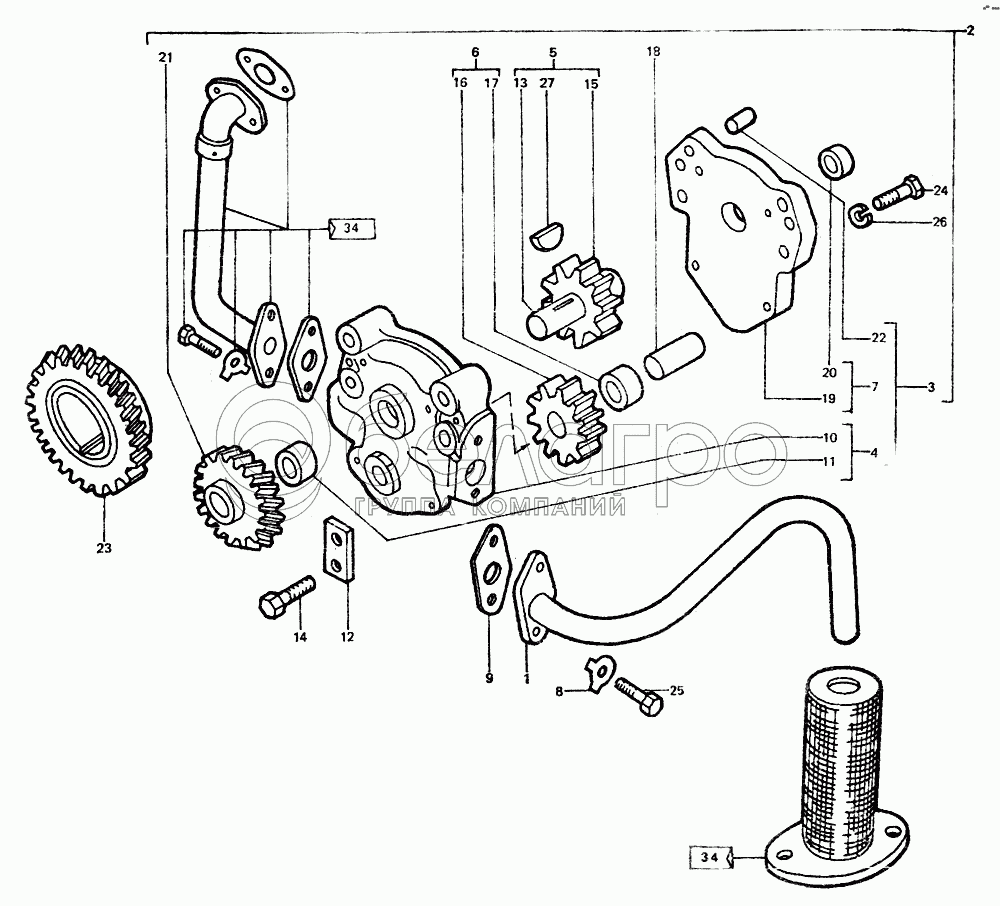 Каталог запасных частей к технике: ЛТЗ-55. Насос масляный с трубой приемника