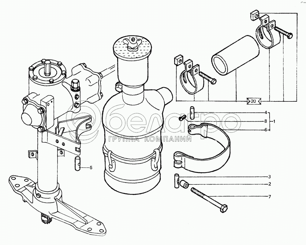 Каталог запасных частей к технике: ЛТЗ-55. Установка воздухоочистителя