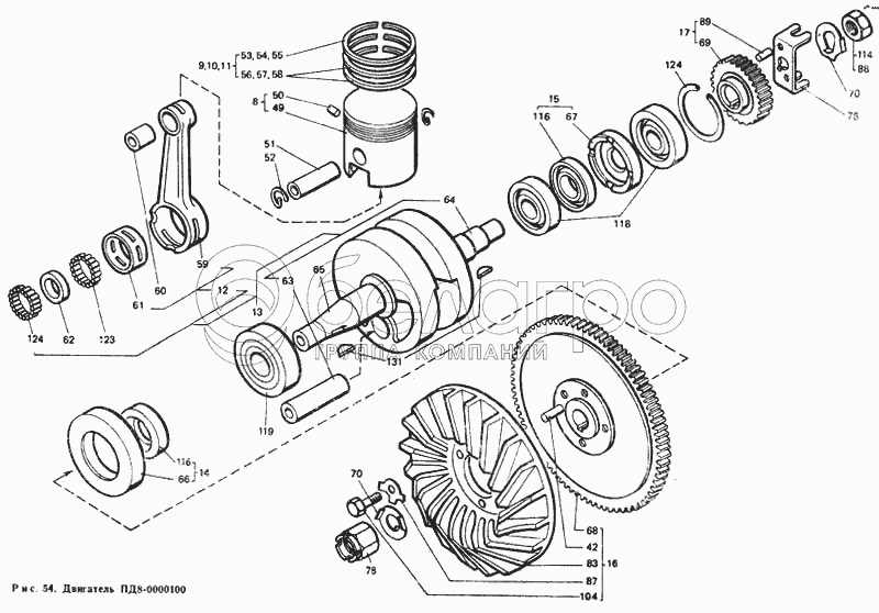 Каталог запасных частей к технике: ЛТЗ Т-40М. Двигатель ПД8-0000100