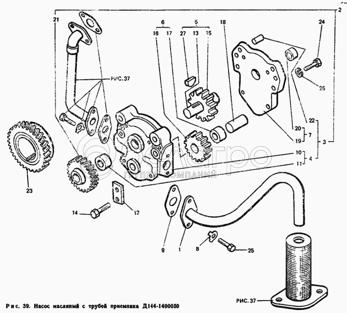 Каталог запасных частей к технике: ЛТЗ Т-40М. Насос масляный с трубой приемника Д144-1400050
