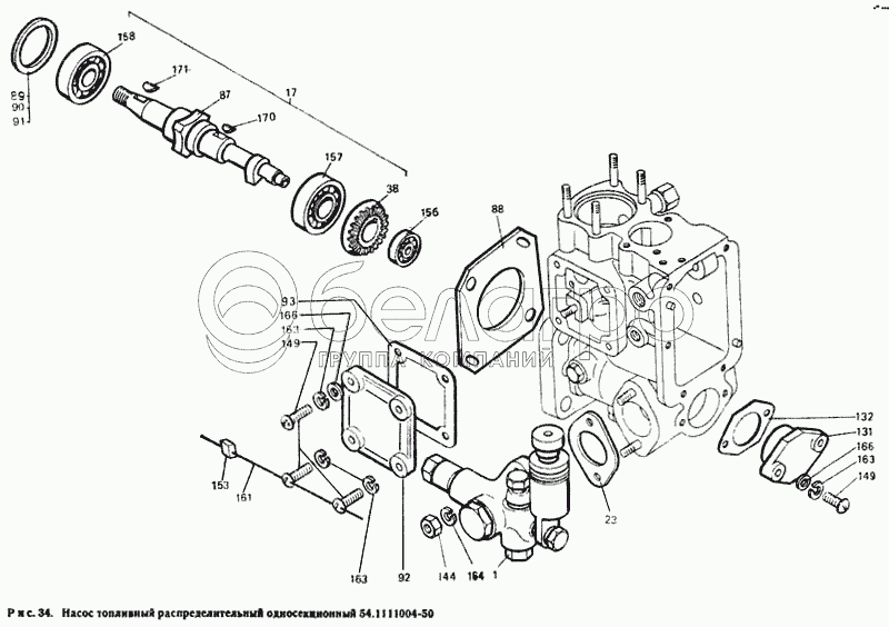Каталог запасных частей к технике: ЛТЗ Т-40М. Насос топливный распределительный односекционный 54.1111004-50