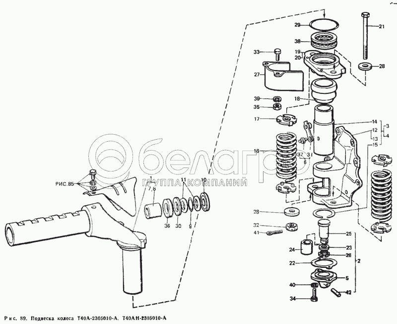 Каталог запасных частей к технике: ЛТЗ Т-40М. Подвеска колеса Т40А2305010-А, Т40АН-2305010-А