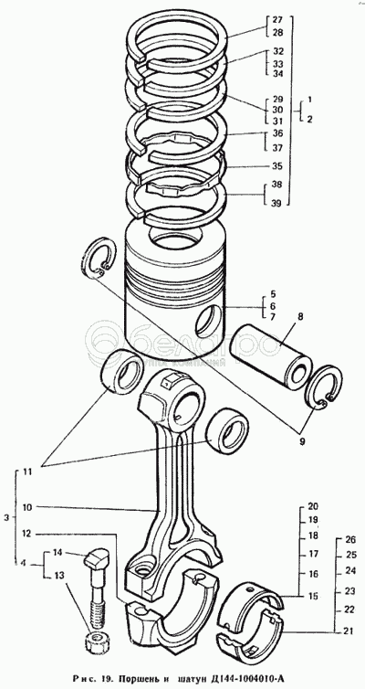 Каталог запасных частей к технике: ЛТЗ Т-40М. Поршень и шатун Д144-1004010-А