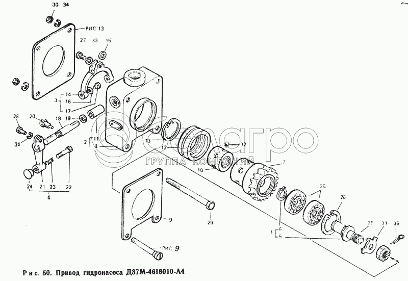 Каталог запасных частей к технике: ЛТЗ Т-40М. Привод гидронасоса Д37М-4618010-А4
