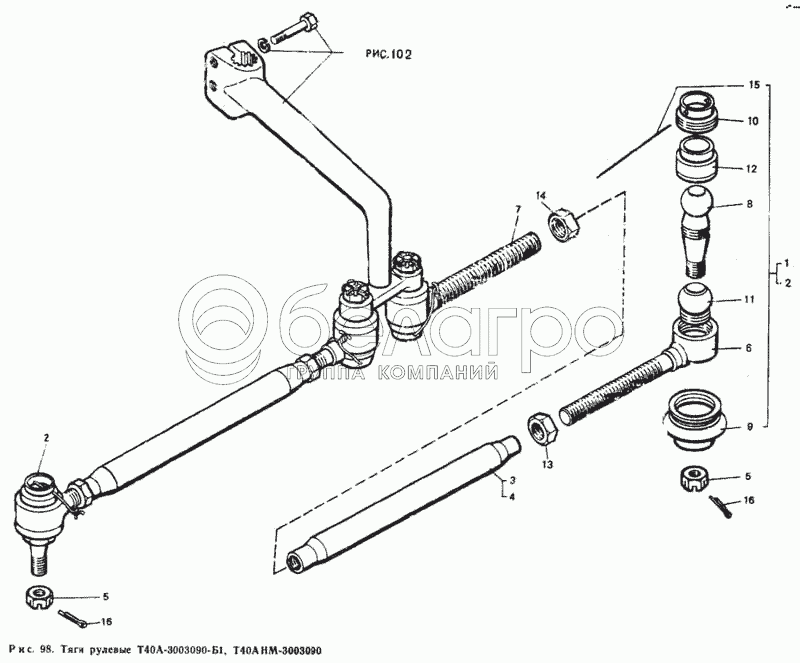 Каталог запасных частей к технике: ЛТЗ Т-40М. Тяги рулевые Т40А-3003090-Б1, Т40НМ-3003090