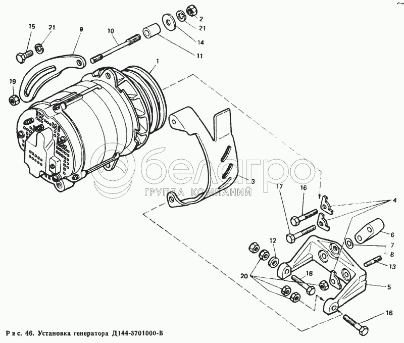 Каталог запасных частей к технике: ЛТЗ Т-40М. Установка генератора Д144-3701000-В