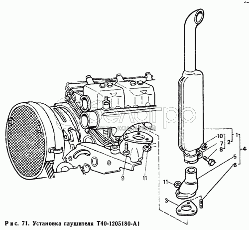 Каталог запасных частей к технике: ЛТЗ Т-40М. Установка глушителя Т40-1205180-А1