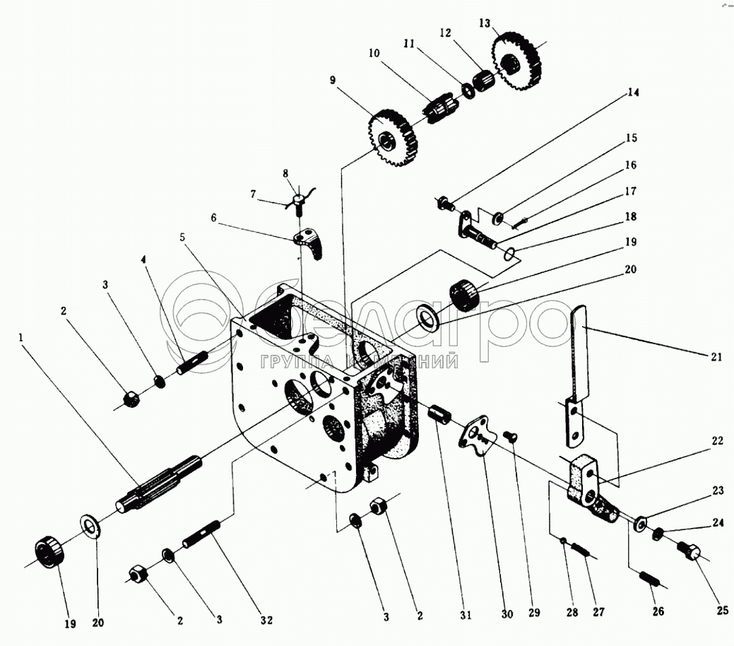 Каталог запасных частей к технике: Минитракторы Уралец. Дополнительная коробка передач (старого образца)