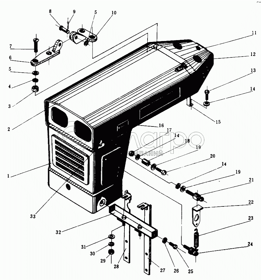 Каталог запасных частей к технике: Минитракторы Уралец. Капот двигателя в сборе (120/160)