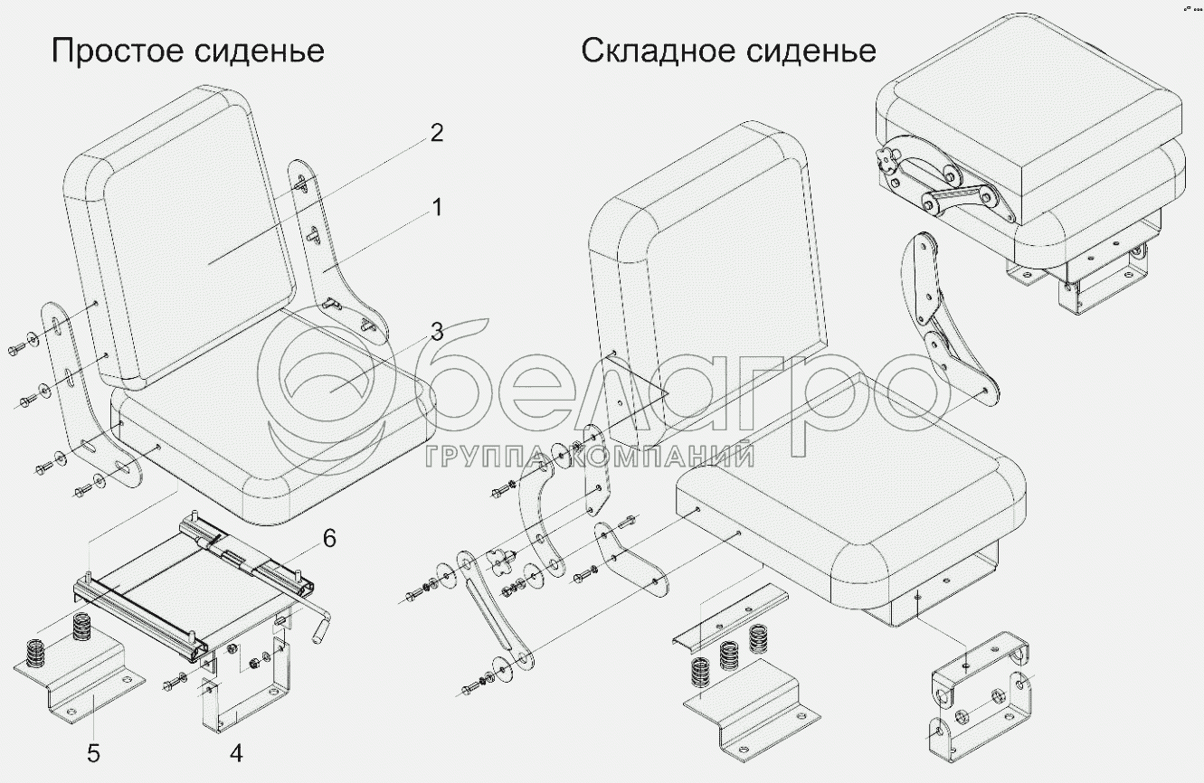 Каталог запасных частей к технике: Минитракторы Уралец. Сиденье