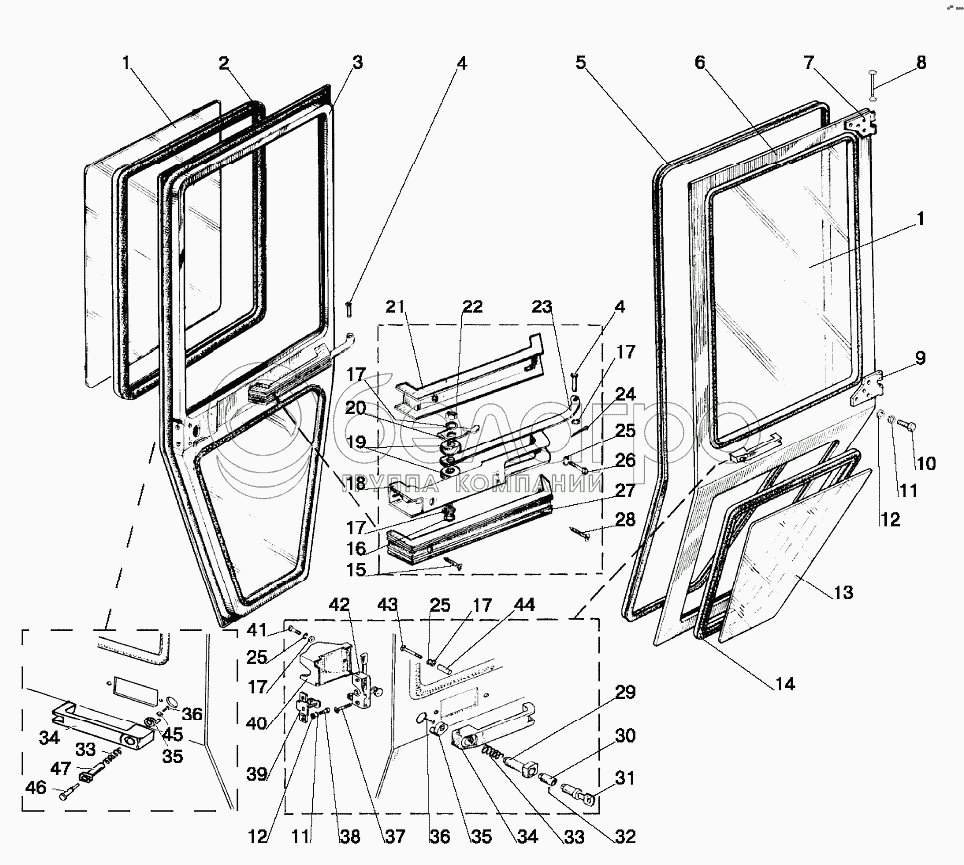 Каталог запасных частей к технике: МТЗ 1025/1025.2/1025.3. Двери кабины