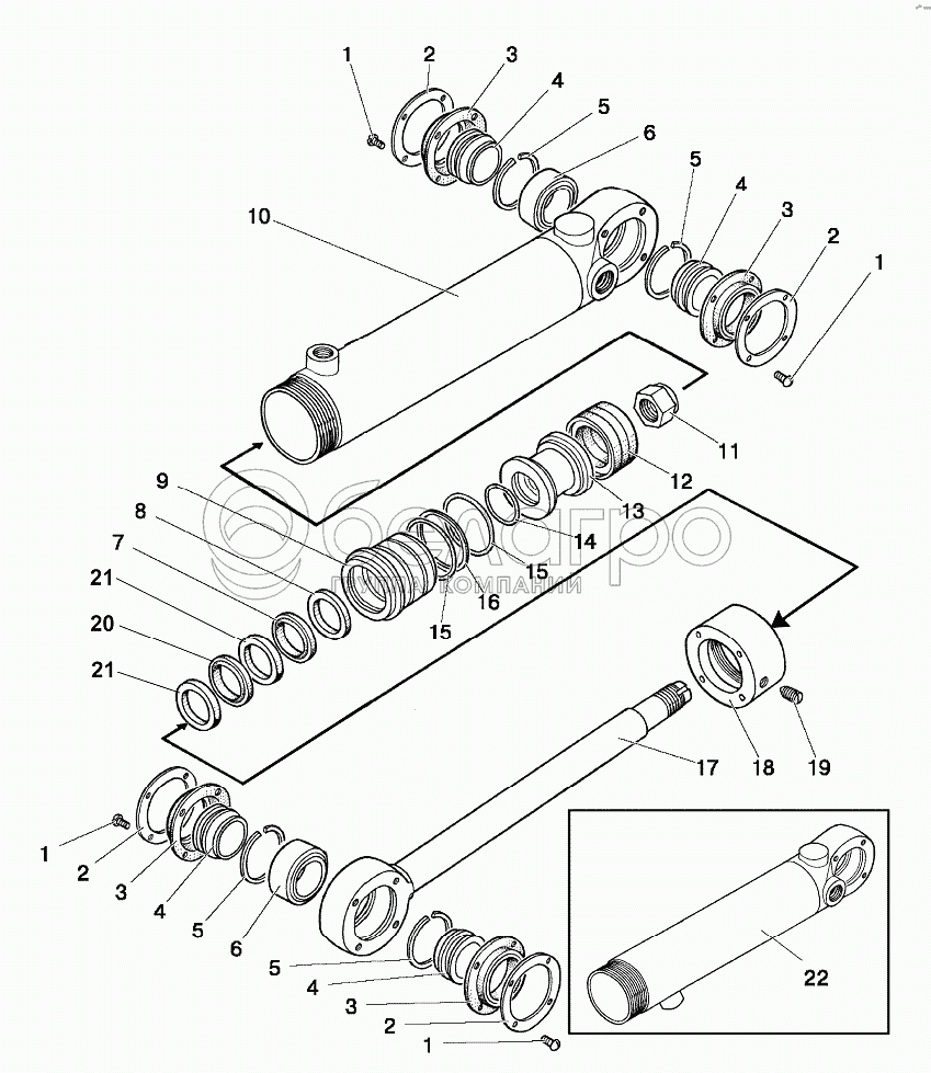 Каталог запасных частей к технике: МТЗ 1025/1025.2/1025.3. Гидроцилиндр Ц63