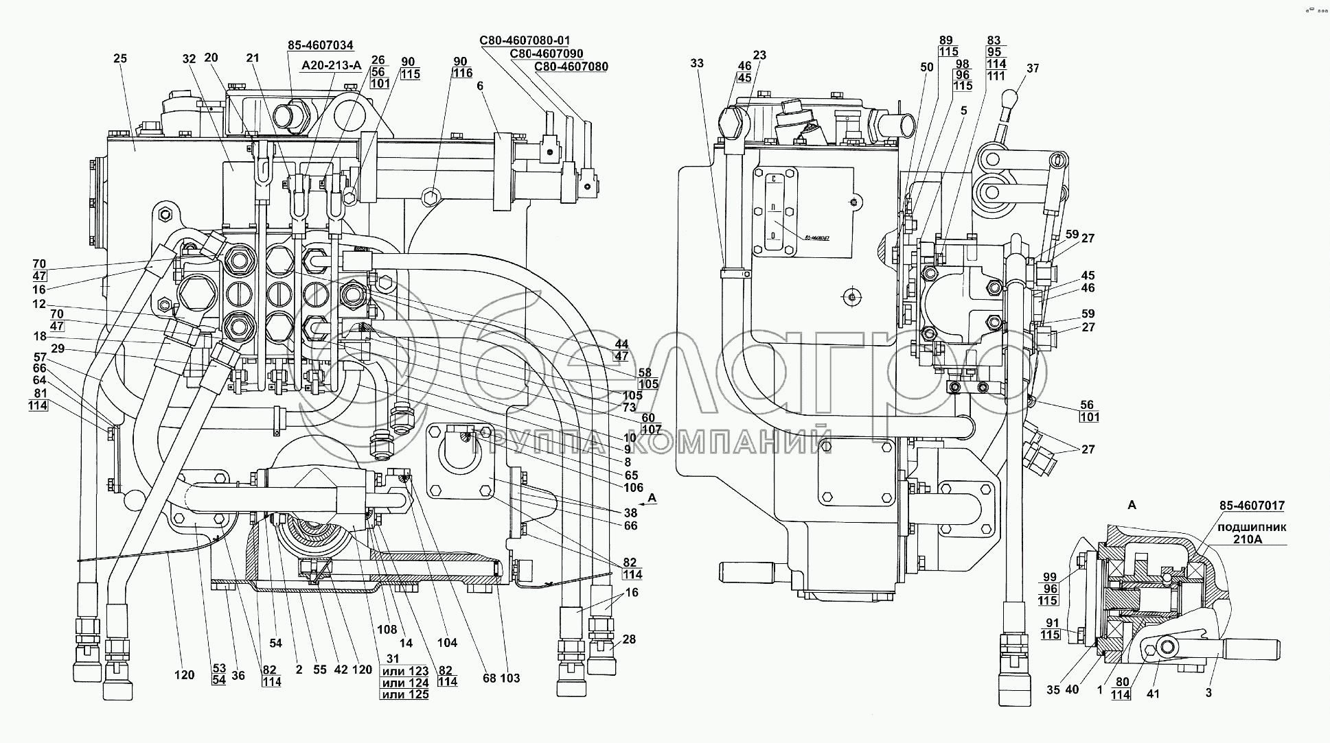 Каталог запасных частей к технике: МТЗ 1025/1025.2/1025.3. Корпус гидросистемы Р1221-4600015