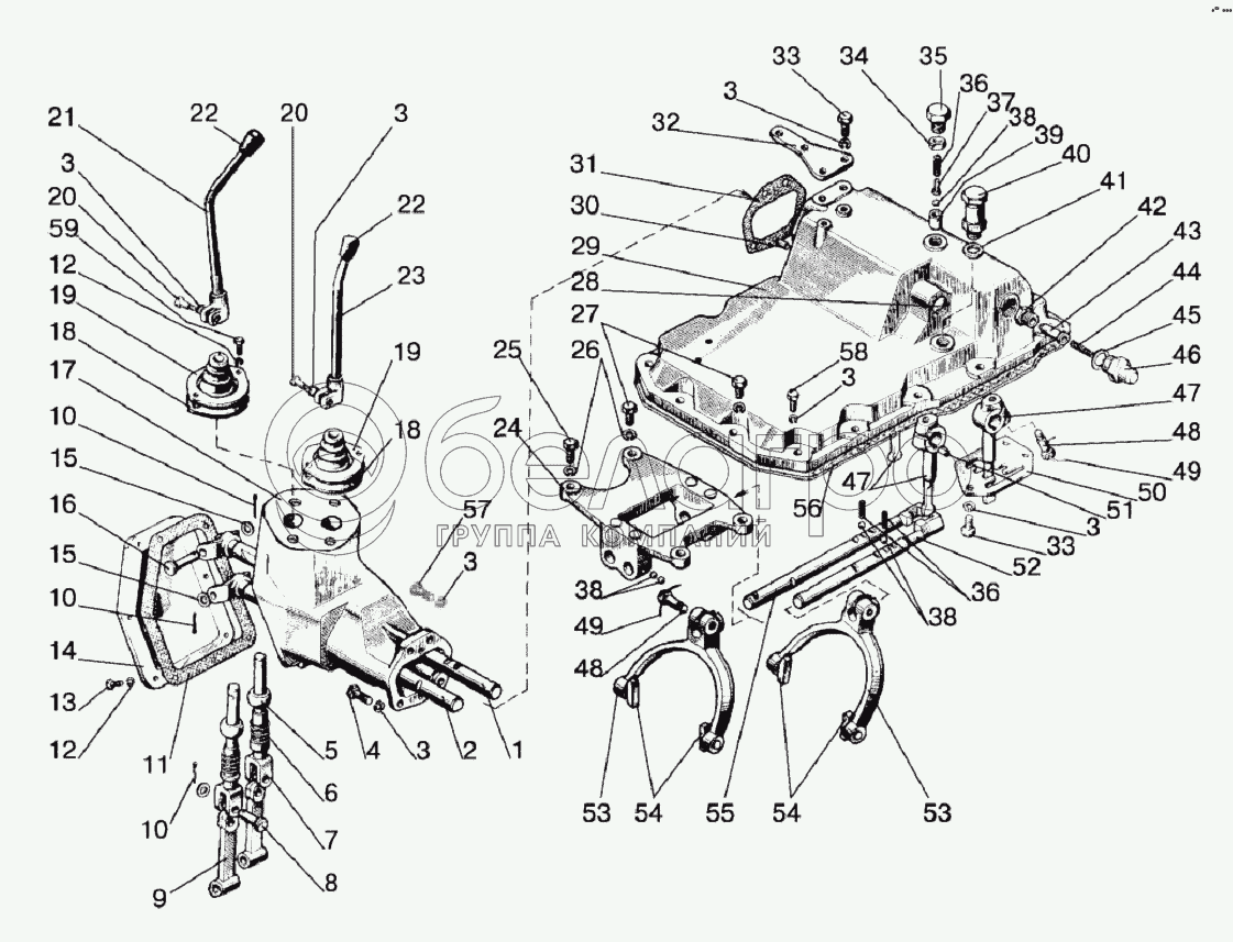 Каталог запасных частей к технике: МТЗ 1025/1025.2/1025.3. Механизм управления коробкой передач