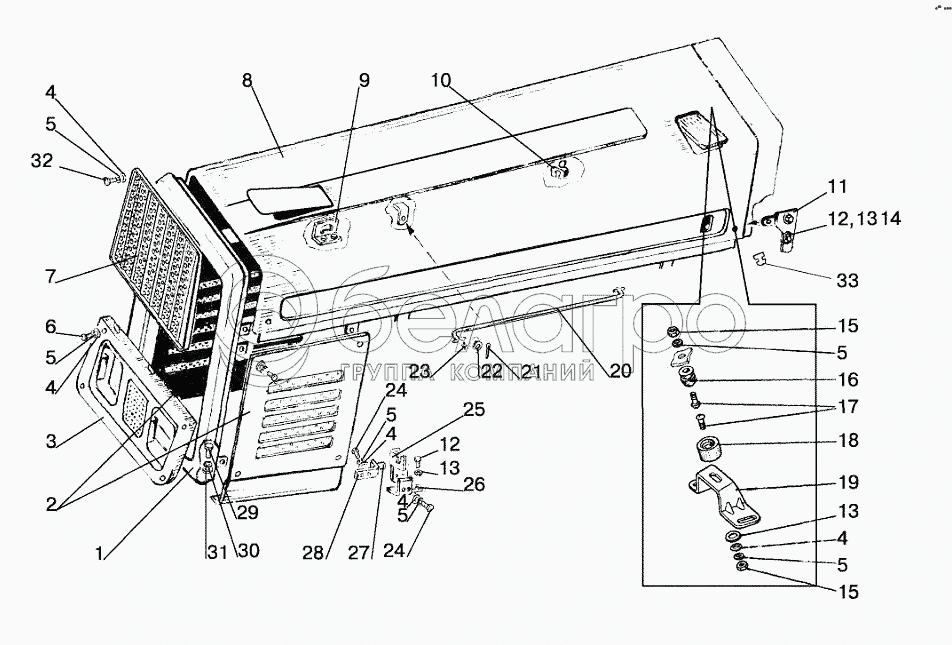 Каталог запасных частей к технике: МТЗ 1025/1025.2/1025.3. Облицовка (1025, 1025.2)