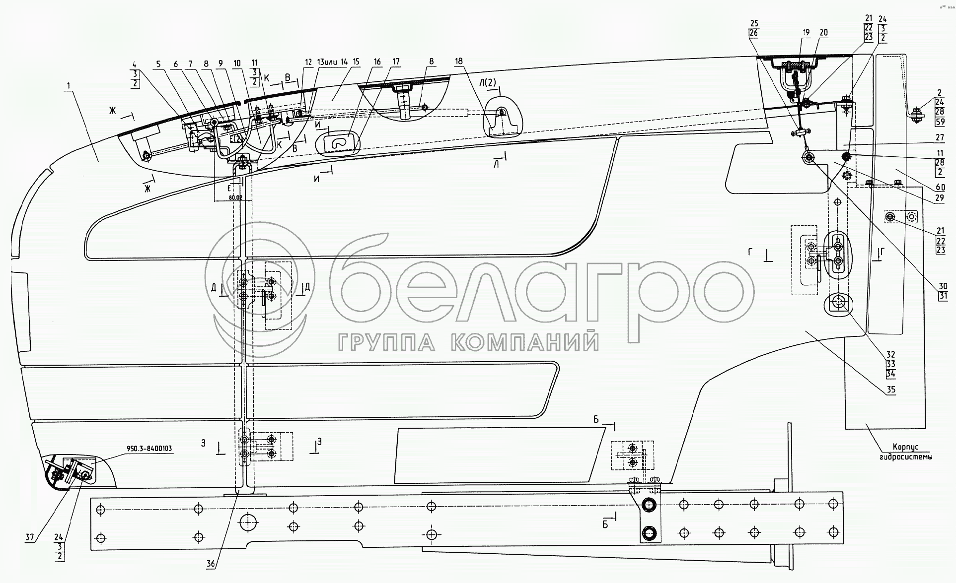 Каталог запасных частей к технике: МТЗ 1025/1025.2/1025.3. Облицовка (вид слева)