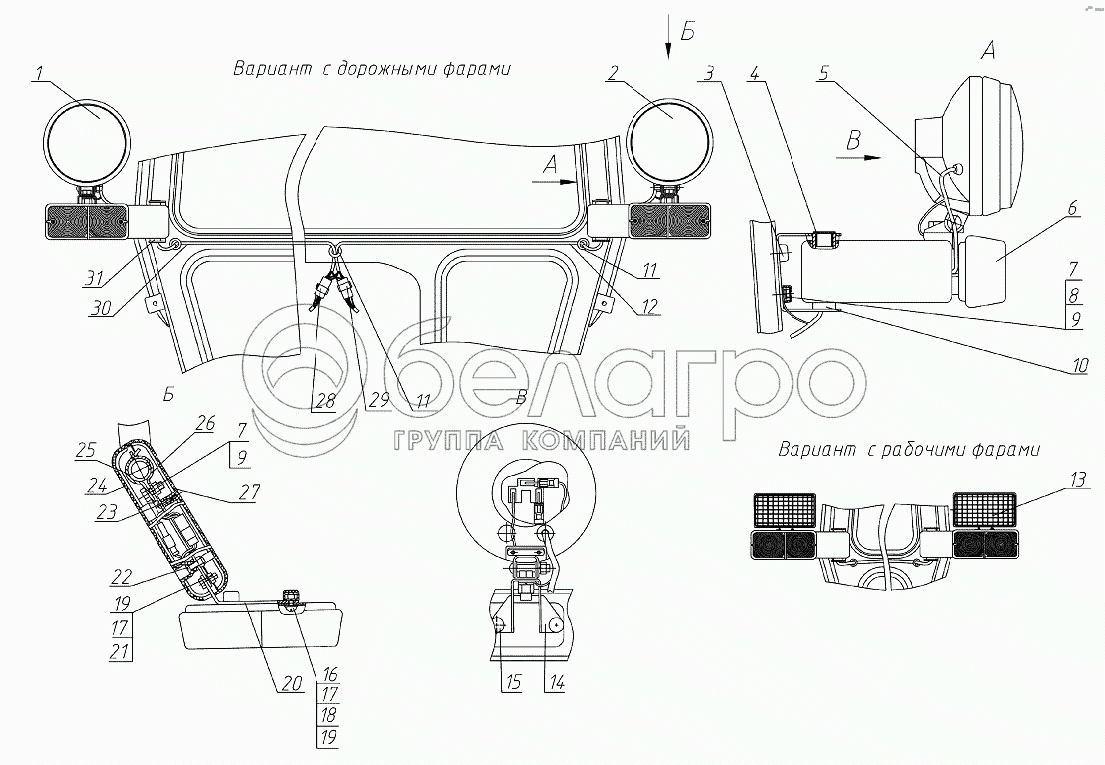 Каталог запасных частей к технике: МТЗ 1025/1025.2/1025.3. Установка фонарей передних