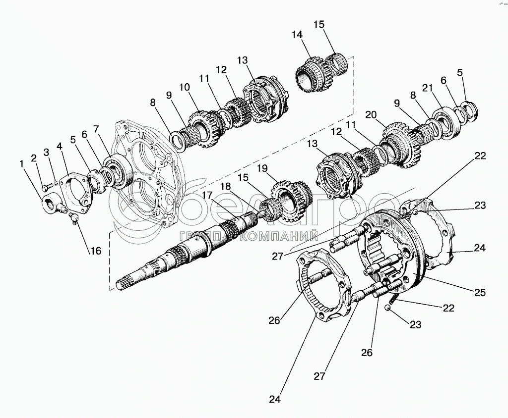 Каталог запасных частей к технике: МТЗ 1025/1025.2/1025.3. Узел коробки передач